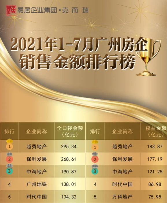 《2021年1-7月广州房企销售榜》发布,金年会金字招牌信誉至上入口地产蝉联两项第一